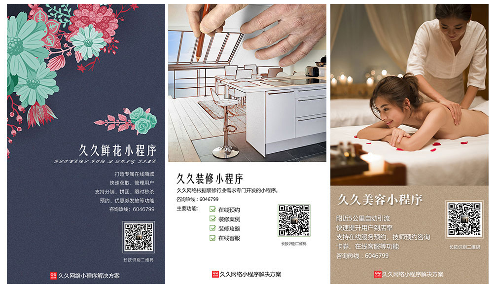 大慶久久網(wǎng)絡(luò )科技有限公司,憑借16年對大慶網(wǎng)站建設、微信公眾號開(kāi)發(fā)、軟件開(kāi)發(fā)的實(shí)戰技術(shù)經(jīng)驗,以及對市場(chǎng)的了解和分析,為不同的行業(yè),根據經(jīng)營(yíng)方式的差異性,量身定制了大慶小程序開(kāi)發(fā)策劃方案,滿(mǎn)足不同的客戶(hù)的應用需求。
